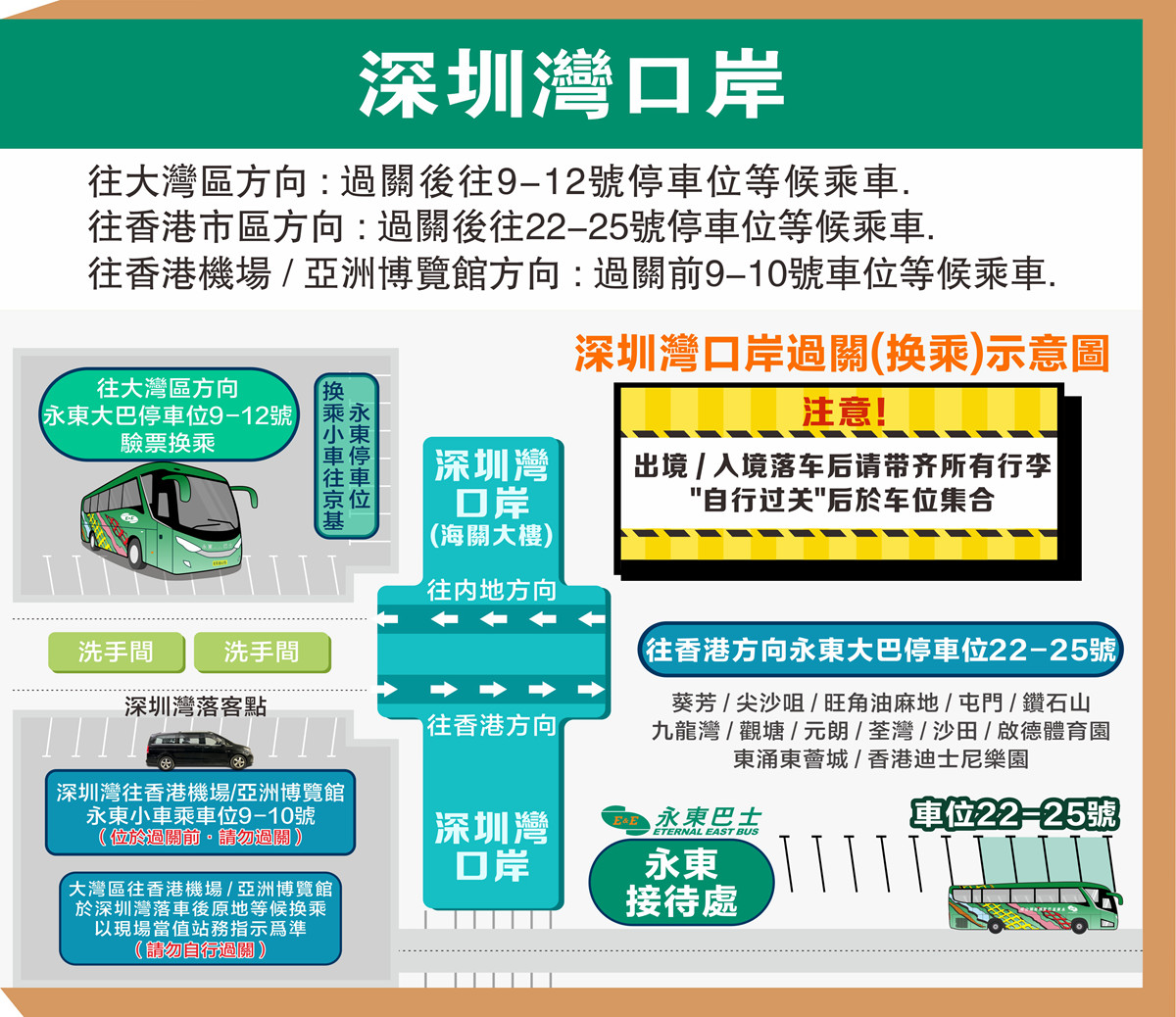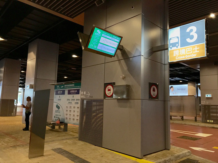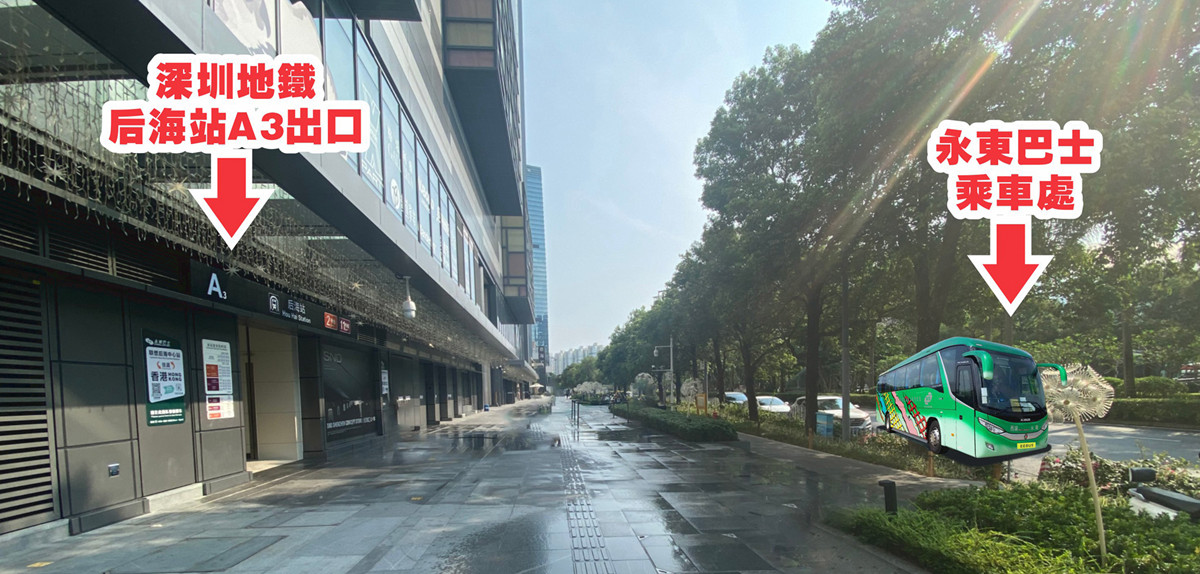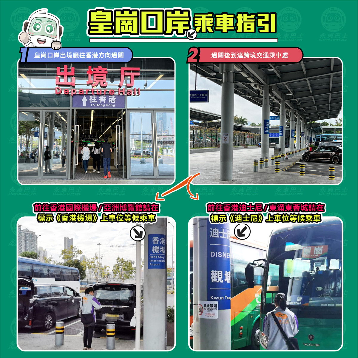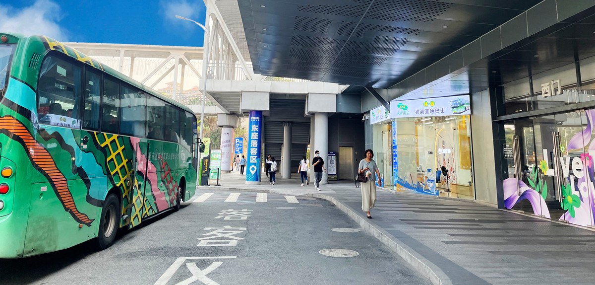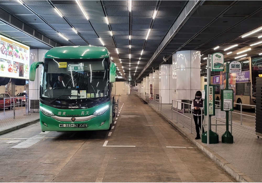 往香港市區方向→過關後往一樓跨境巴士上落客區2號位