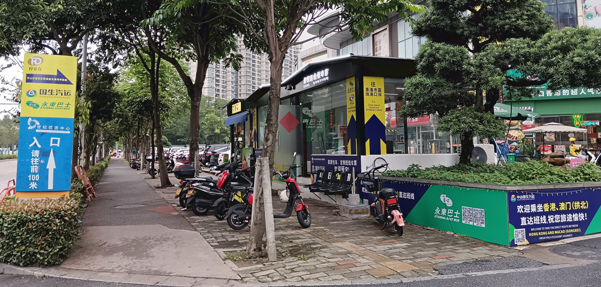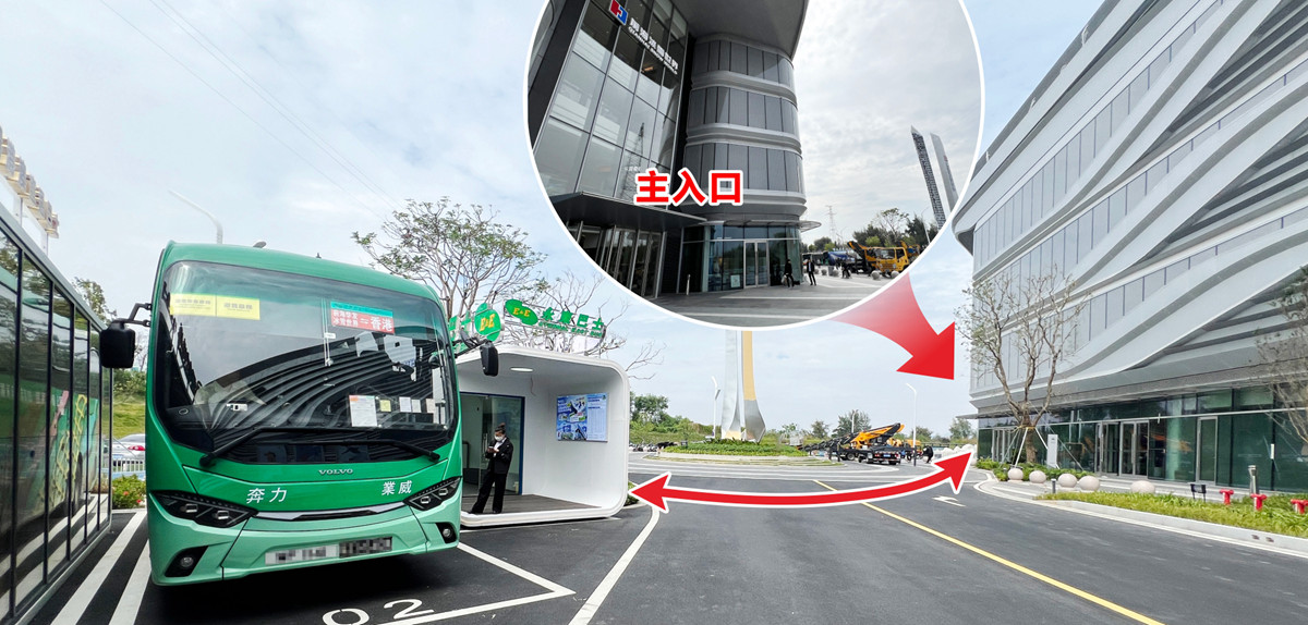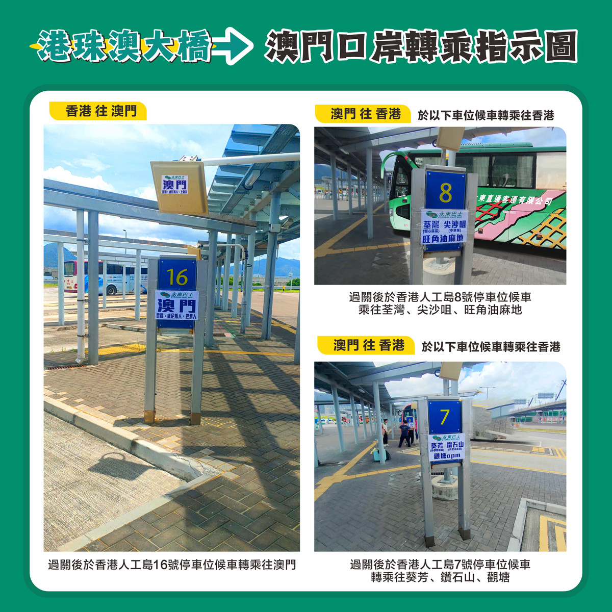 澳門口岸往澳門:過關後於邊檢大樓跨境巴士上客區(離開邊檢大樓後轉左直行到尾)