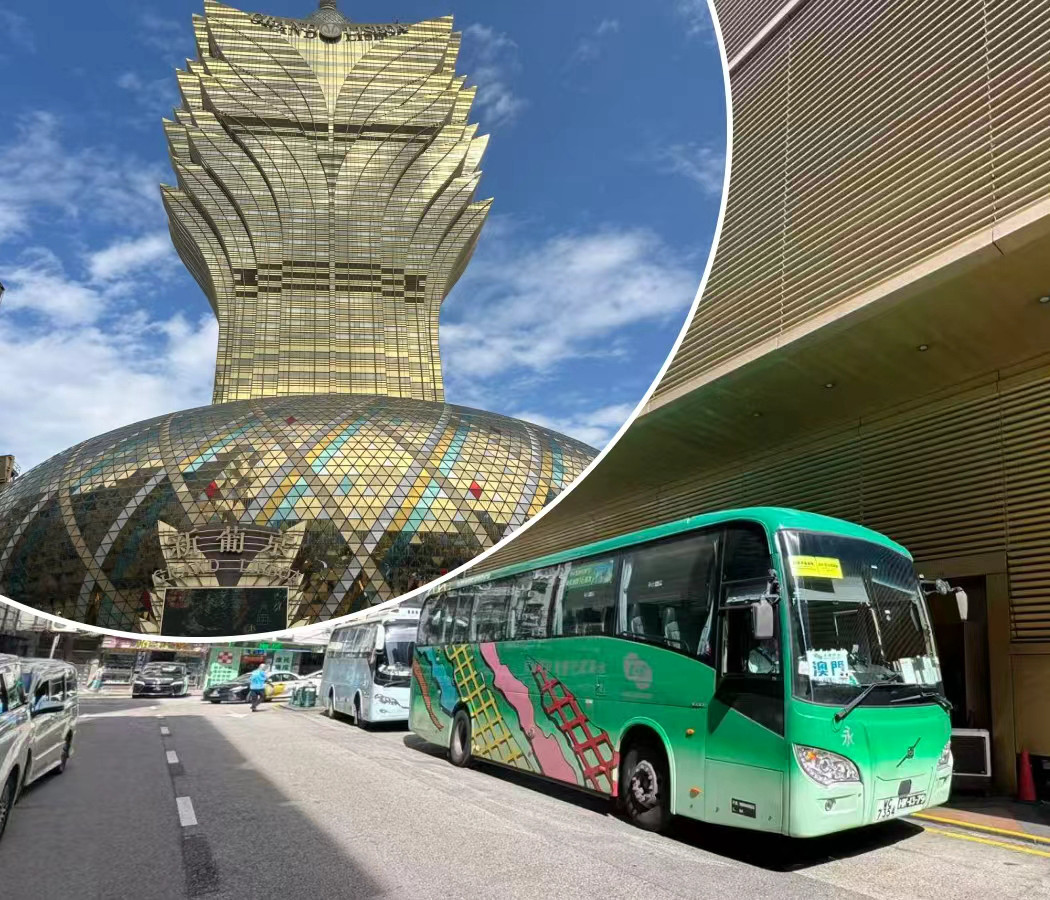 澳門半島新口岸南灣區交界葡京路2-4號酒店側門跨境巴士上客區