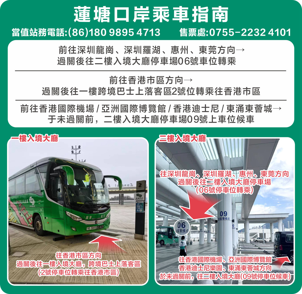 往深圳龍崗、深圳羅湖、惠州、東莞方向→過關後往二樓入境大廳停車場06號車位