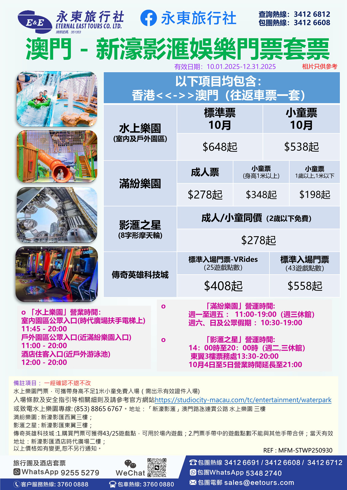 澳門「新濠影滙」水上樂園套票(門票+往返車票)